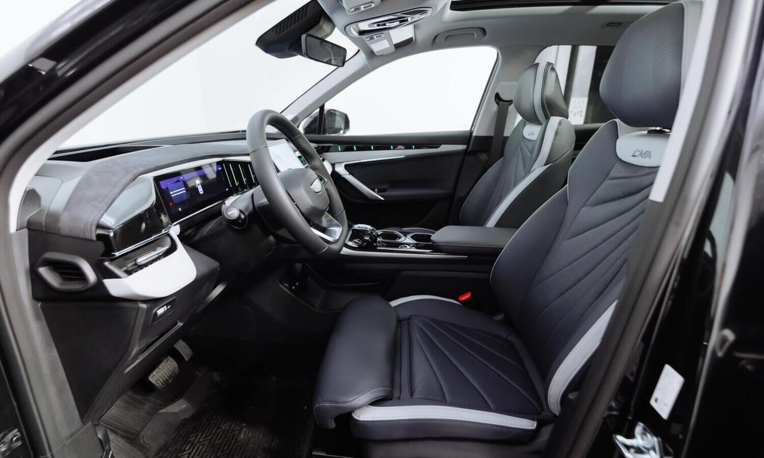 • Отделка интерьера и сидений тёмно-серой экокожей со светлыми вставками
